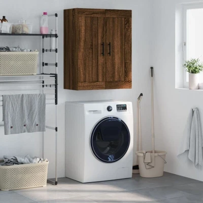 ManoManoGeneral description This wall-mounted cabinet with an elegant design makes a timeless addition to your interior decor. The engineered wood is of exceptional quality, featuring a smooth surface along with strength, stability, and resistance to moisture. The cabinet has 3 compartments with 2 doors, providing ample storage space for keeping your daily essentials well organized. This hanging cabinet doesn't take up any floor space and can be easily hung on the wall. The stylish black iron door handles enhance the cabinet's attractiveness. Additionally, this versatile cabinet can be placed on top of a sideboard to form a highboard, creating extra storage space, making it suitable for your living room, bedroom, study, and any other living space. Technical specifications Colour: Brown oak Material: Engineered wood, iron Dimensions: 69.5 x 34 x 90 cm (W x D x H) Assembly required: Yes Installation Screws and plugs for inside the wall are not included. It is advised to find and use screws and