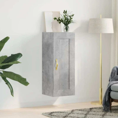 ManoManoGeneral description This wall-mounted cabinet with an elegant design makes a timeless addition to your interior decor. The engineered wood is of exceptional quality, featuring a smooth surface along with strength, stability, and resistance to moisture. It offers ample storage space with 3 compartments behind doors, allowing you to keep your daily essentials well organized. This hanging cabinet doesn't take up any floor space and can be easily mounted on the wall. The stylish and durable metal door handle enhances the cabinet's attractiveness. Additionally, this versatile cabinet can be placed on top of a sideboard to create a highboard, providing extra storage space. Its simple design makes it suitable for various living spaces, including the living room, bedroom, and study. Technical specifications Colour: Concrete grey Material: Engineered wood, metal Dimensions: 34.5 x 34 x 90 cm (W x D x H) Assembly required: Yes Installation Screws and plugs for inside the wall are not included.