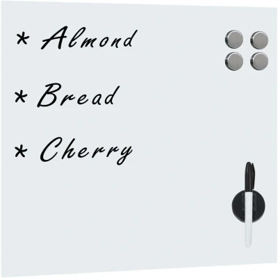 VidaXLDry-erasable magnetic glass board offers all the benefits of a traditional board in a more modern way. The glassboard comes with safety temper glass , which will not easily stain, scratch or dent. You can secure papers or notes on the board with the magnet included. Additionally, you can write on the magnetic board with dry-erasable white pen and it is easy to clean with the included board wiper. The required wall mounting materials are included, which makes it easy to attach the board to any wall in your home, office or school. The writing board is also easy to assemble.