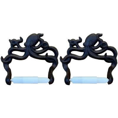 Wall Mounted Octopus Loo Roll Holder in Cast Iron (Pack of 2)