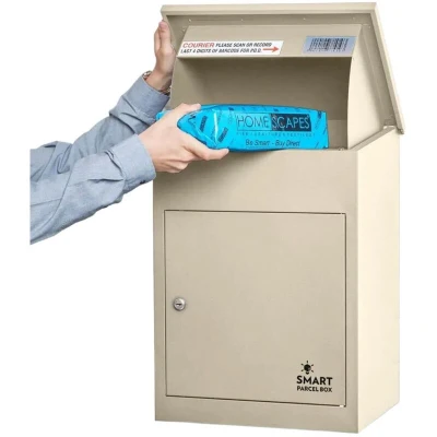 EASY & SECURE DELIVERIES: Medium Smart Parcel Box measuring W440 x D350 x H580 mm. Easily receive multiple deliveries every day from multiple couriers when you are not at home. Colour: Cream EXPERTLY ENGINEERED: Manufactured from high grade, anti-rust coated galvanised steel, our outdoor weatherproof post box is built to last. With a large capacity, this smart post box accepts large parcels measuring up to 320mm x 205mm x120mm. TRUSTED SECURITY: Our exclusive anti-fishing design ensures that delivered parcels can only be retrieved from the holding compartment using your unique key. Each box includes a unique barcode that can be recorded or scanned as proof of delivery. Enjoy your safe and secure parcel drop box. CONVENIENT ACCESS: Featuring a single front opening, this post box offers easy and secure parcel retrieval. Offers flexible installation options, whether you prefer it mounted on or built into walls. QUICK INSTALLATION: Easy to install wall mounted parcel delivery box. It is recommended that you install at an optimal posting level (5ft) for extra security and ease of delivery.