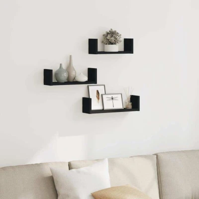 Wall Shelf 3 pcs Black Engineered Wood Vidaxl