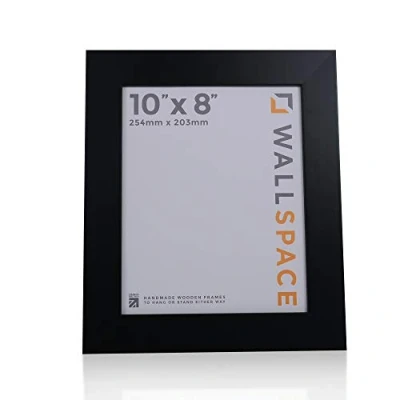 QUALITY WOODEN 10x8 PICTURE FRAMES: This 10x8 Frame is perfect for displaying your treasured photos, prints, poster or other art work. Easy to fit into, and simple to hang on a wall. 10x8 inch Frame made from REAL WOOD and with REAL GLASS LONG LASTING MATERIALS: These 8x10 Black Frames are made by skilled picture framers using solid wood and REAL GLASS for optimal viewing of your pictures. This 8x10 Inch Frame size has a classic contemporary look which will look great in any home or office. IDEAL FOR ANY OCCASION: Our 10 x 8 Black Frame is a great way to store and display your memories, achievements or favourite artwork. You can add an eye-catching display in your home or office, where this 10x8 Photo Frame will enhance your chosen decor whether for in your own home or as a gift for a chosen loved one. It can also stand on a sidetable or mantlepiece thanks to it's built in stand LANDSCAPE or PORTRAIT DISPLAY: This Black 8x10 Frame can hang or stand either vertically (portrait) or horizontally (landscape) thanks to it's built in hangers already attached to the back. Black Photo Frame 8x10 inches (or 254 mm x 204 mm in metric) MADE IN THE UK: These Black 10 x 8 Frames are made in the UK by one of our skilled picture framers. As members of the Fine Art Trade Guild we hold ourselves to high standards and each and every picture frame 10 x 8 inches is meticulously checked and inspected after being made. We are a leading UK Manufactuer of Real Wooden Picture Frames - CHECK OUT OUR FANTASTIC AMAZON REVIEWS! Buy 8x10 Picture Frames from the UK's most trusted picture frame manufacturer!