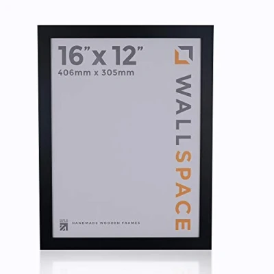 Wall Space 16x12 Black Frame Bevelled Wooden Picture inches Grained WOOD 12x16 Frames 16 x 12 made from SOLID with REAL GLASS