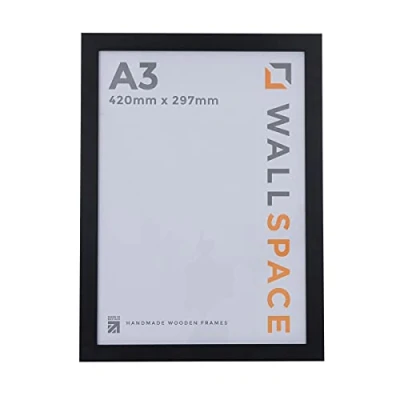 Wall Space A3 Frame for Print Black With Real Glass and Solid Wood Perfect Photo or Picture Made in UK