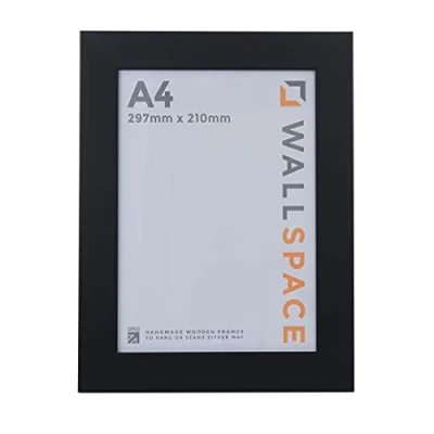 QUALITY WOODEN A4 PICTURE FRAMES: This A4 Frame is perfect for displaying your treasured photos, prints, poster or other art work. Easy to fit into, and simple to hang on a wall. A4 Frame made from REAL WOOD and with REAL GLASS LONG LASTING MATERIALS: These A4 Black Frames are made by skilled picture framers using solid wood and REAL GLASS for optimal viewing of your pictures. This A4 Frame size has a classic contemporary look which will look great in any home or office. IDEAL FOR ANY OCCASION: Our A4 Black Frame is a great way to store and display your memories, achievements or favourite artwork. You can add an eye-catching display in your home or office, where this A4 Photo Frame will enhance your chosen decor whether for in your own home or as a gift for a chosen loved one. LANDSCAPE or PORTRAIT DISPLAY: This Black A4 Frame can hang either vertically (portrait) or horizontally (landscape) thanks to it's built in hangers already attached to the back. Black Photo Frame A4 (or 297 mm x 210 mm in metric) MADE IN THE UK: These Black A4 Frames are made in the UK by one of our skilled picture framers. As members of the Fine Art Trade Guild we hold ourselves to high standards and each and every picture frame A4 is meticulously checked and inspected after being made. We are a leading UK Manufactuer of Real Wooden Picture Frames - CHECK OUT OUR FANTASTIC AMAZON REVIEWS! Buy A4 Picture Frames from the UK's most trusted picture frame manufacturer!