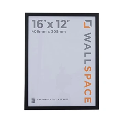 Wall Space Thin 16x12 Black Frame Picture 16x 12 inches 12x16 Frames made from WOOD with REAL GLASS Photo