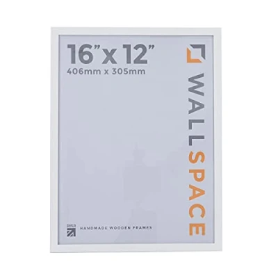 Wall Space Thin 16x12 White Frame Picture 16x 12 inches 12x16 Frames made from WOOD with REAL GLASS Photo