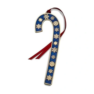 This beautiful ornament features gold and white snowflakes on a dark blue enameled background This is the 44th edition of this treasured annual collectible series made in 2024 Includes a gift box, protective velvet pouch and ribbon; the back of the ornament is flat, 24k gold-plated and stamped with the year 2024 Ornament measures 4 1/2-inches high and 1 1/2-inches wide Hand-wash with warm water and a mild detergent; rinse and dry immediately