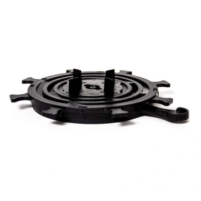 Wallbarn Adjustable Paving Minipads are ideal for suspended paving systems with low height requirements, needing minor adjustments for a flat finish. Suitable for slabs, tiles on flat roofs, balconies, terraces, and decks, they allow easy installation with precise adjustments without lifting slabs, saving time and effort. The 150mm diameter headpieces and baseplates secure the edges of four slabs for stability. Telescopic stems offer easy height adjustment for a level surface. Positioning lugs ensure spacing for drainage and a uniform look. Minipads create a cavity for ventilation and concealing pipes and cables. Made from virgin fibre polypropylene, they ensure durability in all weather. The system is held in place by the weight of slabs, with height adjustments possible while slabs remain in position. The product supports a weight tolerance of 683kg and temperatures from -40C to 75C, making it robust for various environments.. Wallbarn Minipad Adjustable Pedestal - 10mm to 25mm Black Polypropylene