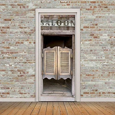 Wallflexi Door Thrilling Saloon Home Decoration Wall Art Murals Decals Living Room Nursery Restaurant Hotel Café Office Décor Removable Self Adhesive Stickers, Vinyl, Multicolour, 200 x 88 0.03 cm