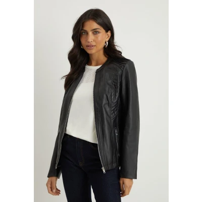 Wallis Womens Black Faux Leather Stitch Detail Jacket viscose Size 8 UK