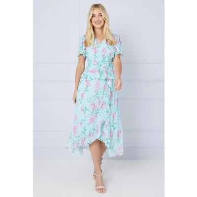 Wallis Womens Petite Floral Ruffle Peplum Midi Dress Pink Size 12 UK