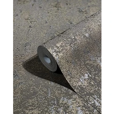 Wallpaper Brown Concrete Optics Gold Non Woven Metallic Industrial Glossy Plaster 100% Made in Germany 10,05x0,53m Avalon