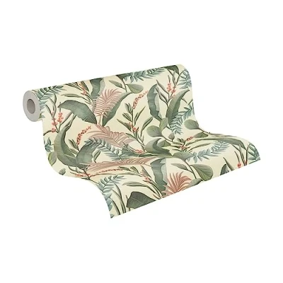 Wallpaper Cream Green Living Room Bedroom 394361 Non Woven Jungle 10.05 m x 0.53 for 5.33 m² Made in Germany