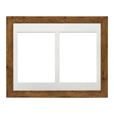 Walnut Frame 16x12' Multi Aperture Picture with White Mount to fit (2x) 9x7' Photos Perspex Sheet Wall Mountable Landscape or Portrait
