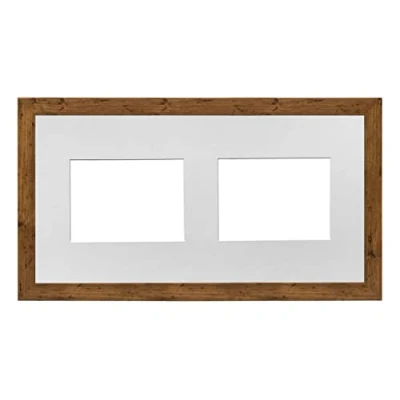 Walnut Frame 20x10' Multi Aperture Picture with White Mount to fit (2x) 7x5' Photos Perspex Sheet Wall Mountable Landscape or Portrait