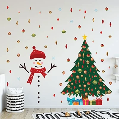 WALPLUS 150x170cm Christmas Combo Decorations Wall Stickers Cute Snowman by The Tree Art Window Display Clings Decals Living Room Sale Clearance Home Bedroom DIY Gift