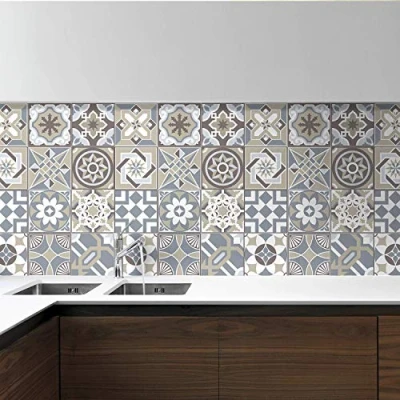 WALPLUS 15cm(6") 24 pcs Limestone Spanish Tiles Wall Tile Stickers Peel and Stick Backsplash Self Adhesive Vinyl Home Decoration DIY Living Bedroom Splashbacks for Kitchen Paint on