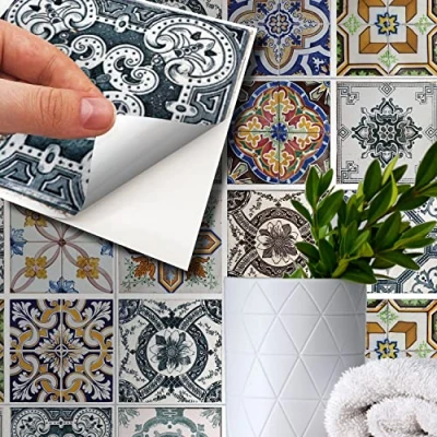 WALPLUS 15cm(6") 24 pcs Tile Stickers Corfu Colourful Mediterranean Peel and Stick Backsplash Self Adhesive Decal Vinyl Home Decors DIY Splashback Spring Easter Decoration Paint on Tiles