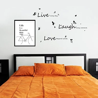 Walplus 182 x 100 cm "Bicycle Quote + Vivid Live Laugh Love" Removable Wall Stickers Frame Sticker Office Home Decoration, Black White