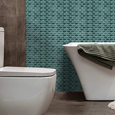 WALPLUS 28.5x14cm@24 pcs Shimmering Green Honeycomb Hexa Wall Tile Sticker Backsplash Paint Stick on Tiles Peel and Self Adhesive Stickers for Kitchen Bathroom Transfer