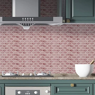 WALPLUS 28.5x14cm@60 pcs Shimmering Rose Honeycomb Hexa Wall Tile Sticker Backsplash Paint Stick on Tiles Peel and Self Adhesive Stickers for Kitchen Bathroom Transfer