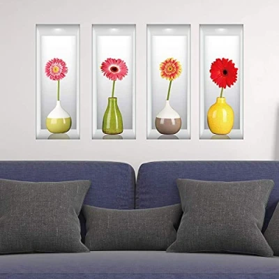 WALPLUS 3D Displayed Germinis Vases Wall Sticker, Vinyl, Multi Colour, 60 x 10 cm