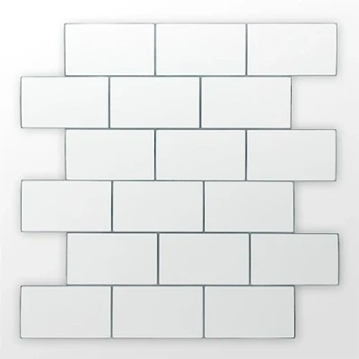 WALPLUS 3D Tile Stickers Peel and Stick Backsplash Splashback Decals Transfer for Kitchen Bathroom Living Room on Waterproof Pure White Grey 20pcs 15.4x30.5cm
