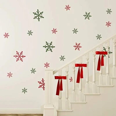WALPLUS 60x28cm Christmas Decorations Wall Stickers Coloured Snowflakes Art Window Display Clings Decals Living Room Sale Clearance Home Bedroom DIY Gift