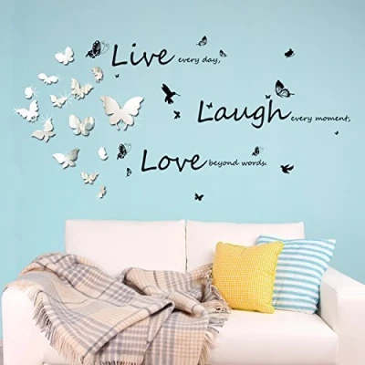 Walplus C2WW002000 WSM2057 14 Mirror Butterflies Plus WS4011 Vivid Live Laugh Love Wall Art Murals Nursery Office Home Decoration