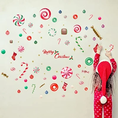 WALPLUS Christmas Combo Decorations Wall Stickers Merry in Candyland Art Window Display Clings Decals Living Room Sale Clearance Home Bedroom DIY Gift