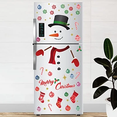 WALPLUS Christmas Combo Decorations Wall Stickers Merry with Happy Snowman Art Window Display Clings Decals Living Room Sale Clearance Home Bedroom DIY Gift