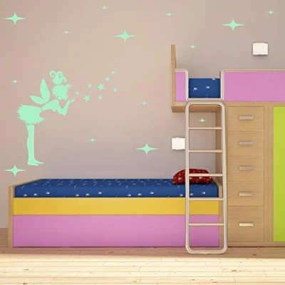This package contains 2 products; 1 piece of Fairy Glowing Sticker and 1 piece of Stars Glowing Sticker The furnishing size can up to 100cm X 100cm depends on your preference These stickers are glow in the dark Clean very well the surface you intend to apply the sticker on. This product is easy to apply and will not leave stains on walls when removed. Apply on painted surfaces at least 3 weeks after painting. If applied on wallpaper the sticker will NOT be REMOVABLE. Can be applied on laminated surfaces, but might cause damage when removed