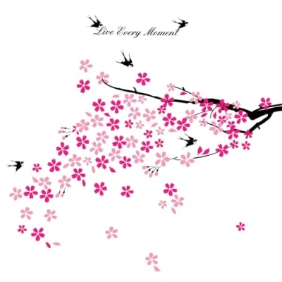 Walplus Swallows & Flowers Wall Stickers Office Home Decoration, 150cm x 80cm, PVC, Removable, Self Adhesive, Pink