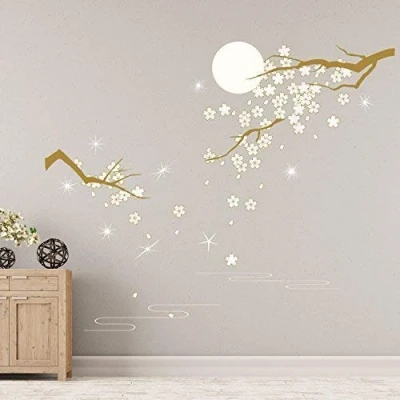 Walplus Swarovski Crystals and Blossom Flowers Under Moonlight Wall Stickers, Vinyl, Multi Colour, 90 x 30 0.5 cm