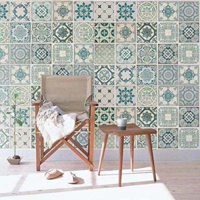 WALPLUS Vintage Green Tiles Mural Wall Stickers, Vinyl, Multi Colour, 63.5 x 3 cm