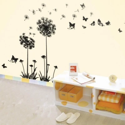 Walplus Wall Stickers Dandelion Flying in The Wind Removable Self Adhesive Mural Art Decals Vinyl Home Decoration DIY Living Bedroom Office Décor Wallpaper Kids Room Gift, Black