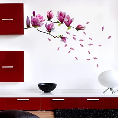 Walplus Wall Stickers Huge Magnolia Flowers Removable Self Adhesive Mural Art Decals Vinyl Home Decoration DIY Living Bedroom Office Décor Wallpaper Kids Room Gift, Multi colour