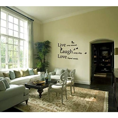 Walplus Wall Stickers Quote"Live Laugh Love" Removable Self Adhesive Mural Art Decals Vinyl Home Decoration DIY Living Bedroom Office Décor Wallpaper Kids Room Gift, Multi Colour