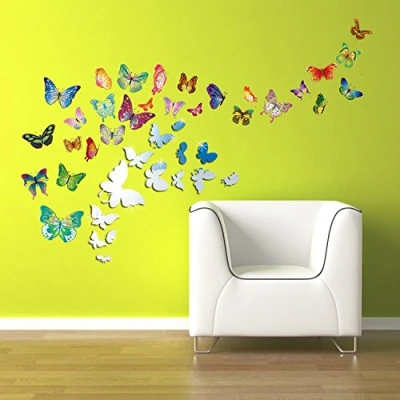 Walplus WSM2057 14 Mirror Butterflies Plus WS3013 Wall Art Murals Nursery Office Home Decoration