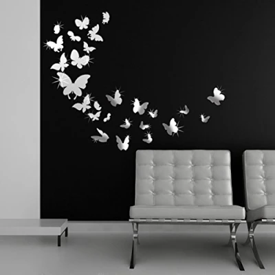 Walplus WSM2057 14 Wall Art + WS1013 3D Mirror Butterflies, Silver