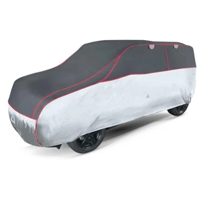 Reliable hail protection – The WALSER Pro waterproof car cover offers optimal protection against hail (impact speed up to 70 km/h, volume approx. 1,400 mm3). Thanks to a 7 mm thick hybrid foam layer, the car cover absorbs the force of the hail impact and thus protects the hood, roof and rear of your car High-quality materials: the robust and durable car cover has been tested under controlled conditions and consists of four layers of material. In addition to a soft 4mm hail absorption layer, a 3mm hard penetration protection layer and a water-repellent outer layer, a fleece inner layer protects your car from scratches and dents Perfect fit – the high-quality, breathable car covers made of 100 % polyester are suitable for many classic vehicles (see pictures on the dimensions of car sheets). The elastic seams make the car cover weather resistant and the 3 clamping straps ensure a firm hold of the car hail cover. Practical features: our tarpaulin also scores with reflectors on the front, rear and sides for increased visibility of the car cover. The ventilation openings of the folding car cover ensure optimal ventilation of the car cover (advice: remove the cover regularly from the car, ventilate it and dry it – permanent moisture reduces the service life). Easy to install: Once put on, the high-quality car cover is attached to the bottom of the vehicle with a practical spring closure and can be secured by 3 additional clamping straps. When not in use, the protective car cover can be easily stored in the storage bag provided with the expander function