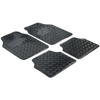Universal size: the checker plate car mats can be cut to size depending on the vehicle type and fit in many standard cars More safety: the anti-slip spikes on the back make the floor mats non-slip and ensure increased safety in road traffic. High-quality material: the Walser rubber mats guarantee reliable protection of the car thanks to the durable material. Sophisticated design: the universal protective mats stand out thanks to their fashionable design in metallic look. Cleaning: The 4-piece set can be easily removed for cleaning and then placed back in the footwell