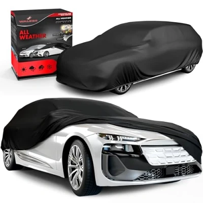 WALSER Tarpaulin Car All Weather Waterproof 100% Weatherproof Cover Outdoor Full Garage Size 8 SUV/Van Grey