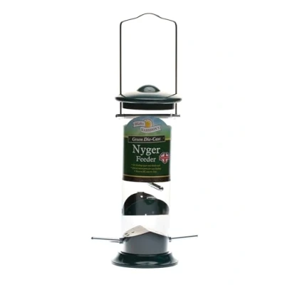 STYLISH GREEN FINISH: Looks extremely elegant in your garden all year round EASY FILL and CLEAN: Perfect for feeding Nyger Seeds to wild birds PREMIUM: Made with high quality die-cast aluminium making it a weather resistant feeder EASY FEED: Contains perches for the wild birds meaning they can enjoy a nutritious meal with ease DURABLE: Manufactured with long lasting metal and plastic