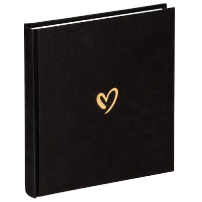Book-bound photo album with linen cover The cover is embellished with a golden heart The album in the size of 20 x 20 cm has 40 white pages made of acid-free photo cardboard The white pages offer plenty of space for individual and personalised design and decoration
