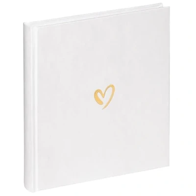 Book-bound photo album with linen cover The cover is embellished with a golden heart The album in the size of 20 x 20 cm has 40 white pages made of acid-free photo cardboard The white pages offer plenty of space for individual and personalised design and decoration