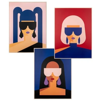 Picture frame set consisting of three frames The frames have an MDF profile in the format 30 x 40 cm All three frames have a different art inlay The frames are equipped with eyelets for portrait hanging