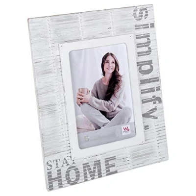Wide profile in bamboo look decorated with lettering. For a photo in the format 4x6 inch (10x15 cm) On the back wall is a put-up-hinge for photos in Portrait and landscape format Available in two colours, White and grey